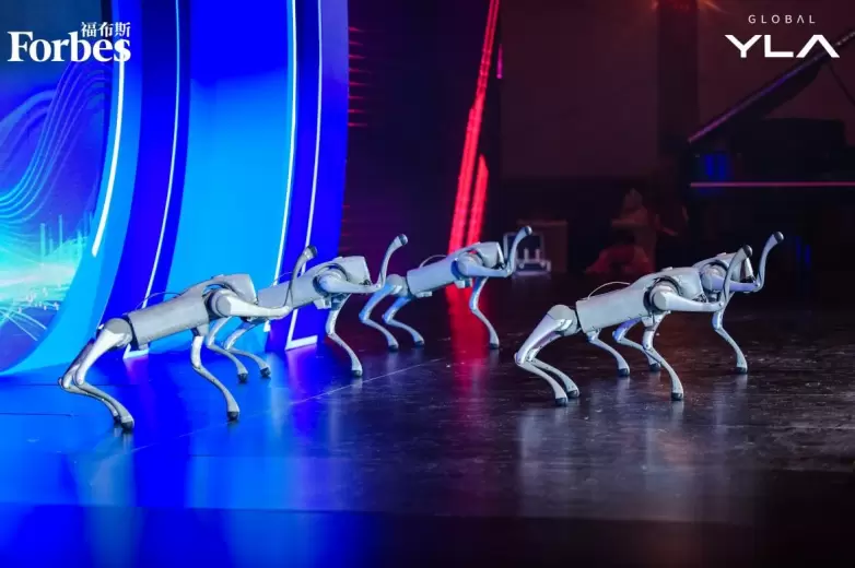 (2025福布斯中国新锐创新创业者论坛暨颁奖盛典现场,机械狗表演)