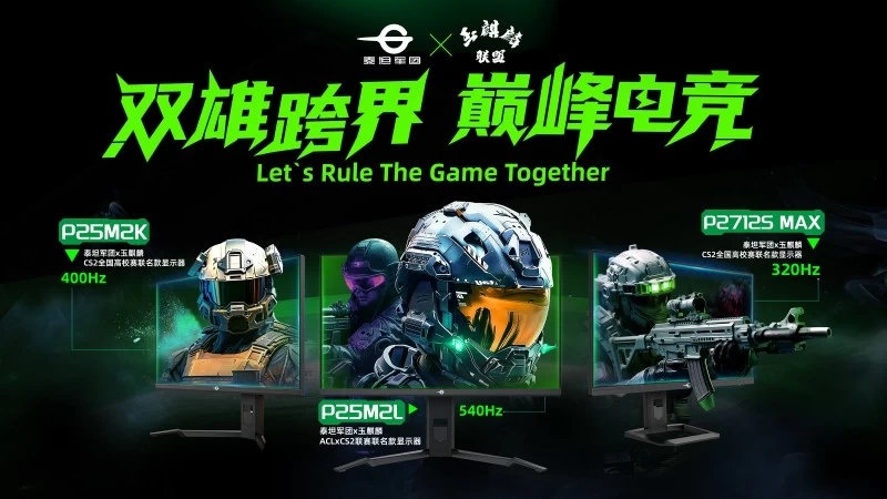 此次的联名系列显示器将目标用户对准了CS2、瓦罗兰特、三角洲行动等FPS玩家,该系列根据不同使用场景和价位预算,初步拟定为玩家带来泰坦军团x玉麒麟2025年玉麒麟CS2&ACL中国区赛联名款显示器P25M2L、泰坦军团x雷魔人杯&玉麒麟CS2第三届全国联赛显示器P25M2K、泰坦军团x雷魔人杯&玉麒麟CS2第二届职业赛联名款显示器P2712S MAX共三款电竞显示器产品。