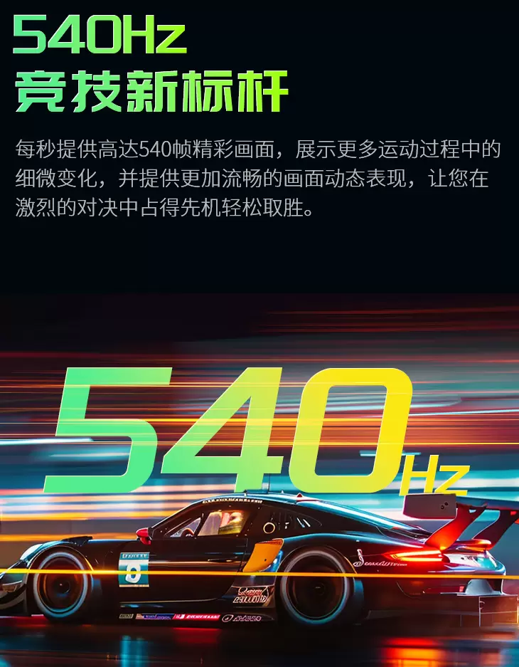 它具有540Hz电竞刷新率,是普通 60Hz 显示器的 9 倍。这意味着每秒可刷新画面540次,从硬件层面大幅提升画面流畅度,有效降低残影。同时,它的灰阶响应时间低至 0.2ms,极大限度减少了画面渲染到呈现之间的延迟。在诸如《CS:GO》这类对反应速度要求极高的射击游戏中,玩家借助这款显示器,能够更加清晰、流畅地捕捉敌人动态,迅速做出反应,抢占先机。