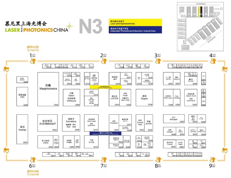 N3馆(激光器与光电子/集成光子及量子专区)展位图