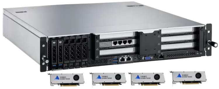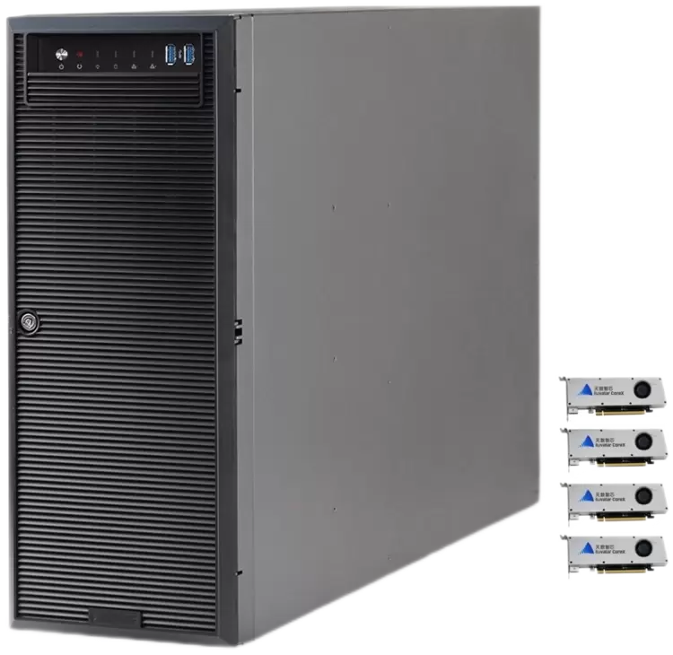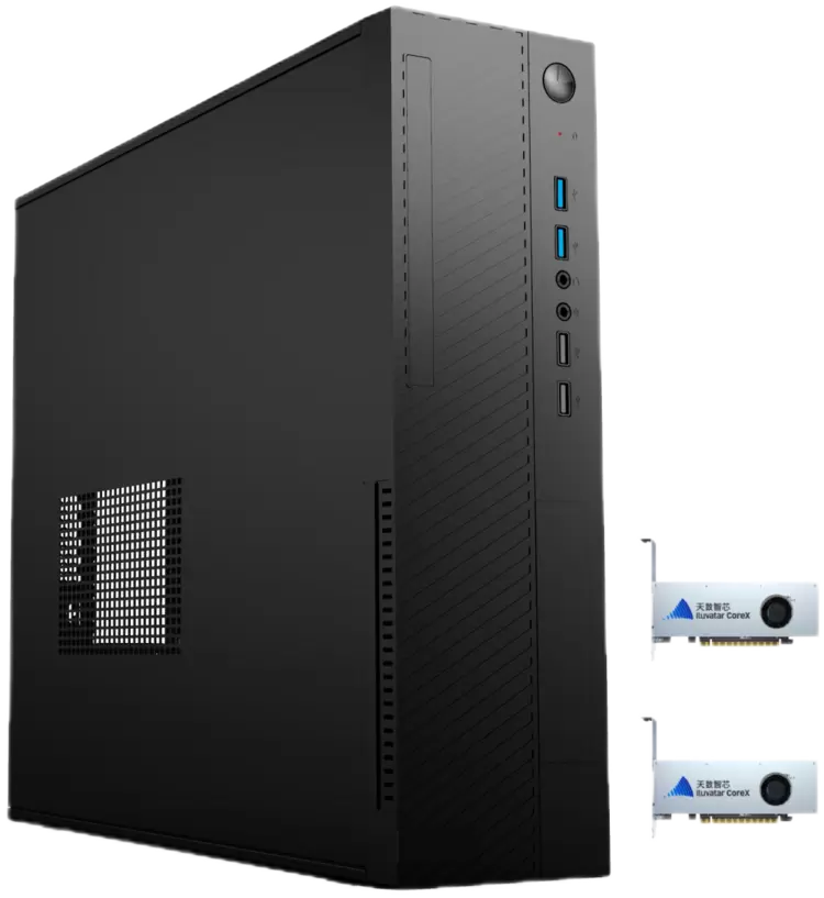 专为运行 DeepSeek - R1 - Distill - Qwen - 32B/DeepSeek - R1 - Distill - Llama - 70B(int 8)打造的 AI Workstation,可配备 4 个天数智芯的智铠 100 算力卡,显存高达 128GB 。强大的算力支持,使其能够轻松应对代码生成、文生图、图生文、多模态等复杂任务推理。