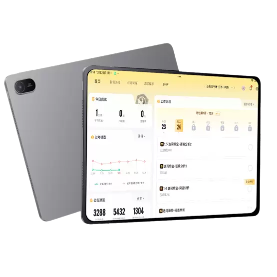 过考Pad基于华为擎云 C5e(第2代)打造,融合了鸿蒙操作系统全方位提升学习体验,实现了从AI精准导学到动态课程更新的完整闭环。