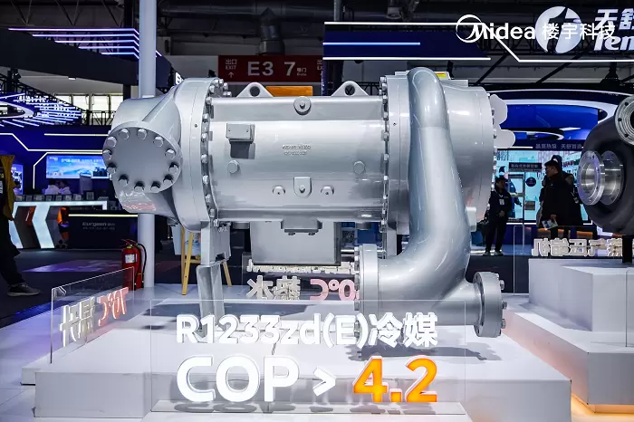 工业能源消费量占全社会能源消费总量的65%左右,是节能重点领域和主战场之一。供热展上,美的楼宇科技展示了其为工业绿色转型需求打造的系列产品。其中,美的超高温单机双级变频离心工业热泵以绿色环保、超高温、大温升、大容量、高能效、应用灵活等特点,成为了展会焦点。该机组采用新一代绿色环保制冷剂R1233zd(E),不仅环保性能卓越,而且热水最高出水温度达130℃,热源侧与供水侧出水最高温升70℃。凭借高效节能、稳定可靠、应用灵活等特点,将在工业锅炉的替代中发挥重要作用。