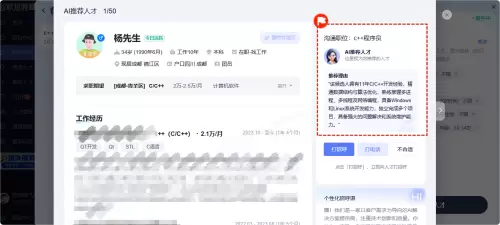 据悉,Deepseek-R1版加持下的“AI发布职位”,可利用大模型自动抽取职位描述中的核心要求,优化文案表达,快速生成更具行业特点、多样语言风格的职位信息,让招聘职位更准确、更有吸引力。“AI推荐人才”则可通过AI对话的方式引导HR充分表达招聘诉求,还可辅助HR与求职者沟通,针对招聘岗位推荐匹配人才并给出具体推荐理由,把HR从繁重的筛选和搜寻中解放出来,省心、高效。
