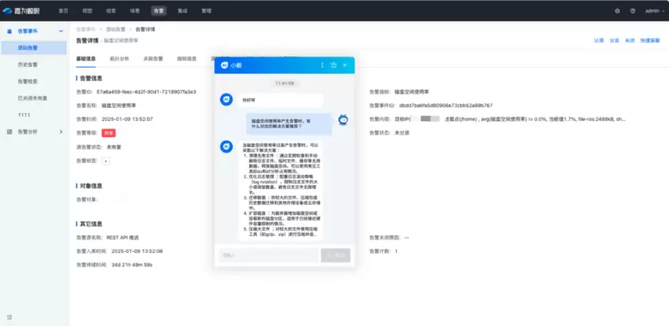 小鲸可基于知识库,可以根据告警事件内容结合知识库找出相关联的知识,并给予解决方案的推荐。