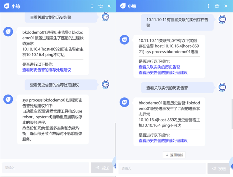 2)支持自然语言发起巡检查询结果,提升应用巡检体验。