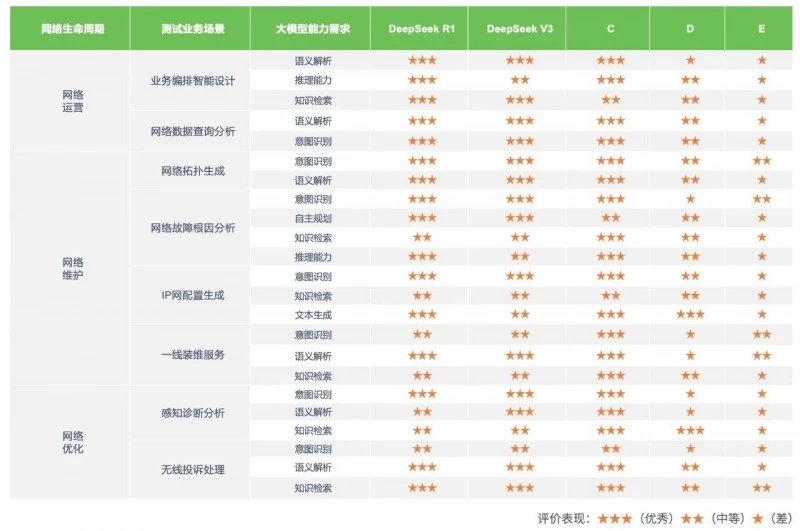 图:自智网络场景大模型能力对比