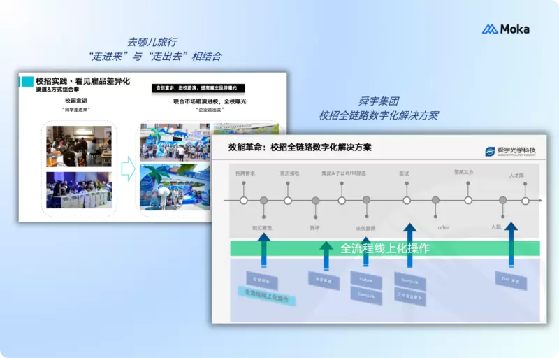 本次活动亦邀请到了校园招聘标杆企业,舜宇集团、去哪儿旅行分别进行了实践分享。舜宇集团校园招聘&雇主品牌经理孙佳阳揭示了校招信息化建设的动态进化逻辑。“校招流程标准化需要持续迭代优化,而这是牵一发而动全身的。”他指出,每年新需求的出现都要求企业全盘考虑系统升级,避免局部调整引发的系统性失衡。
