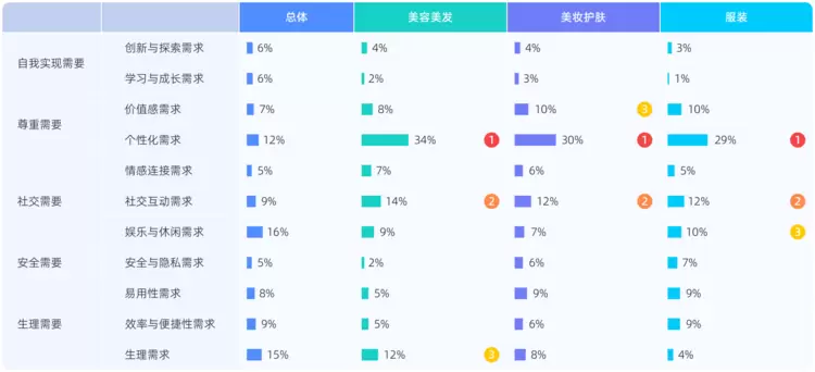 3)美容美发、美妆护肤和服装消费,对于个性化需求体验的追逐是最强烈的