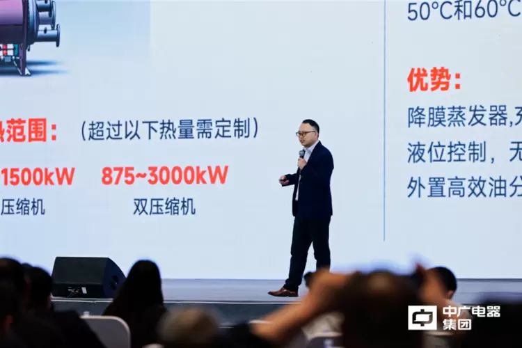 锚定“双碳”战略目标,推动工业绿色发展。中广电器集团技术总监陈建红作《工业热泵的发展及应用》主题分享,聚焦高温热泵技术在化工、食品、石油、医药等工业多领域场景中的应用现状和技术发展路径,探讨工业热泵的技术创新和市场机遇,充分展现中广在工业热泵领域的前沿成果与创新实践。他表示,空气源热泵(空气能)技术的应用领域在不断延伸,整个工业热泵市场的潜力无限。基于对工业热泵市场的布局,中广欧特斯构建了耦合系统、余热回收系统等绿色工业解决方案,来实现工业热泵市场的持续开拓,也为相关工业领域的发展提供了新动能。