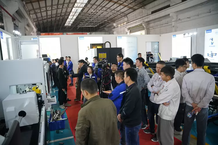 在发布会现场,隆信激光的技术团队进行了K系列5代高速激光切管机讲解,展示了其在复杂切割任务中的出色表现。嘉宾们现场参观,与技术团队进行深入交流,对K系列5代高速激光切管机的创新技术、AI+智能切管装备创新结合下的智慧工厂表示高度赞赏。