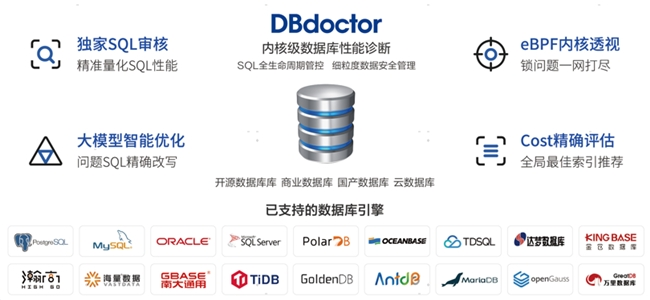 数据库性能诊断DBdoctor孵化于海信聚好看,是一款面向企业级应用的一体化智能数据库管理平台,深度融合性能调优、SQL治理与数据防护三大核心模块,提供从实时诊断分析到智能优化加固的全生命周期数据库解决方案。可以对数据库做细粒度的扫描,快速找到数据库性能问题,一分钟内提供精准的SQL优化改写建议。覆盖全流程的SOL审核和安全变更,保障企业代码质量与数据安全。