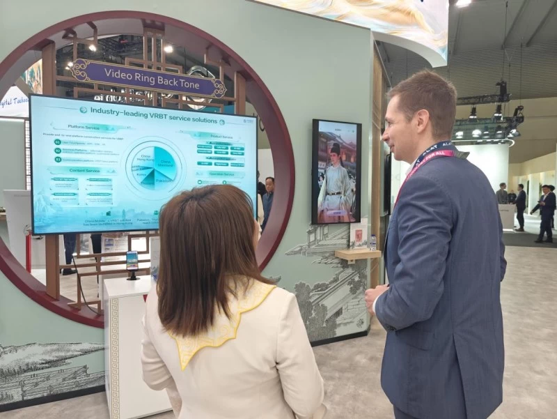 此次展览咪咕还重点展示了视频彩铃的全球化解决方案。据了解,通过与海外运营商合作,目前中国移动视频彩铃商用市场已覆盖亚太、非洲等区域。2024年,中国移动咪咕主导制定的视频彩铃技术标准英文版立项,并完成制定适用于海外视频彩铃内容生产的系统流程,形成基于AI的国际化视频彩铃生产技术方案;2025年其主导的全球首个ITU视频彩铃业务系统新国际标准成功立项,持续巩固中国移动在全球新媒体通信技术标准领域的主导地位,为数字内容生态提供关键支撑。