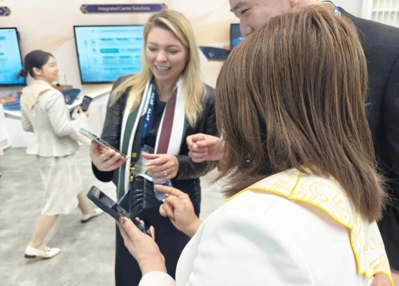 走进“视频彩铃”展区,咪咕以AI技术为核心,展示了AI智创彩铃创新应用与中国移动视频彩铃的全球化解决方案,吸引了众多国际客户驻足体验。展台前,几位西班牙观众好奇地拿起手机体验“AI一图变装”玩法,上传自己的照片后,他们摇身一变成为京剧经典剧目《龙凤呈祥》中的刘备和孙尚香,蟒袍凤冠流光溢彩。更有国潮风、汉服风、民族风等百变华服随心切换,通过AI自动配上背景音乐融合渲染成“时尚大片”,并可一键设置为视频彩铃,高级感十足,引得周围观众纷纷围观拍照。