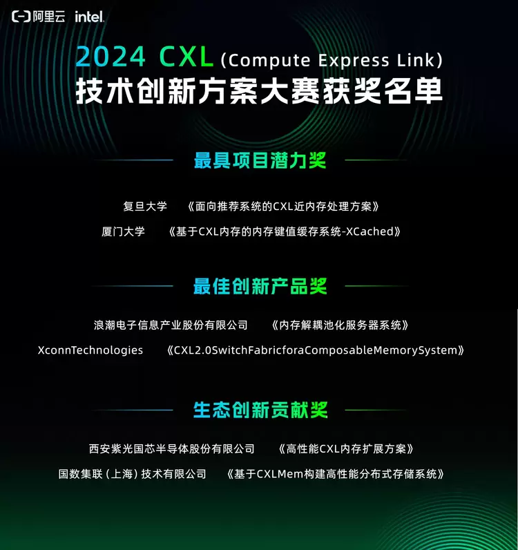 正是在这样的背景下,CXL(Compute Express Link)技术应运而生,并迅速成为解决这一问题的重要答案。2024年12月,由CXL联盟联合intel和阿里云共同发起,阿里云天池平台承办的“2024 CXL技术创新方案大赛”圆满落幕。这场面向亚太地区的技术创新竞赛,不仅展示了CXL技术在数据中心领域的广泛应用前景,更推动了算力生态的革新与繁荣。