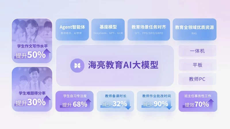 以“科技+服务”双轮驱动的海亮科技,积极拥抱前沿技术,将DeepSeek全线接入现有业务线、中台及产品矩阵。近三年来,海亮科技持续关注并探索人工智能大模型的发展,搭建“海亮教育大模型”,高效支撑产品研发,致力于通过科技为学校各场景数字化重塑注入动能。