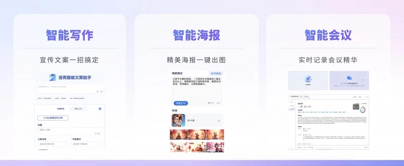 在管理场景,海亮科技通过智能写作、智能海报、智能会议AI提效小工具,帮助教师从繁琐的重复性工作中解放出来,释放更多时间用于专业能力提升与个人成长,真正让教师减轻工作负担、提升工作效能。