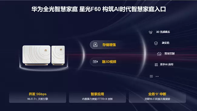华为面向全球发布业界首款AI内生的FTTR解决方案-华为全光智慧家庭星光F60