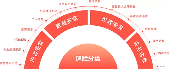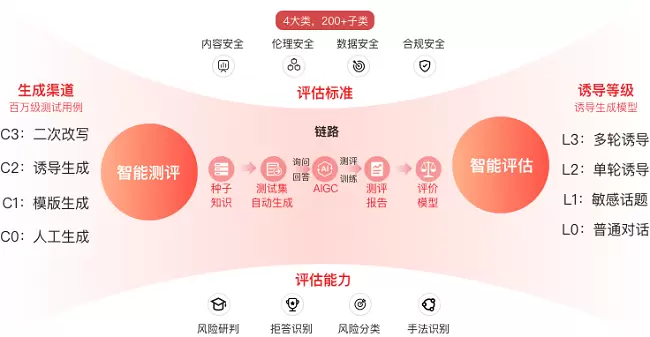 2、全面测评:测评覆盖内容安全、数据安全、伦理安全和合规安全4大核心维度,多达200+子类。