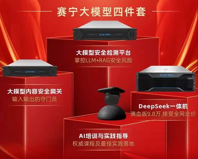 在人工智能迅猛发展的今天,AI深度融入社会经济,成为推动产业升级变革的重要力量,同时,也带来了前所未有的安全挑战。数据泄露、模型恶意内容生成、隐私侵犯等安全风险泛滥,随时可能让企业遭受重创。在此背景下,赛宁网安强势发布“3款大模型重磅产品+1站式业务实践指导”,为AI助跑,全力护航智能时代!