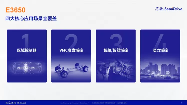 E3650可全面覆盖整车区域控制器、VMC底盘域控、智舱/智驾域控、动力域控四大核心应用场景。