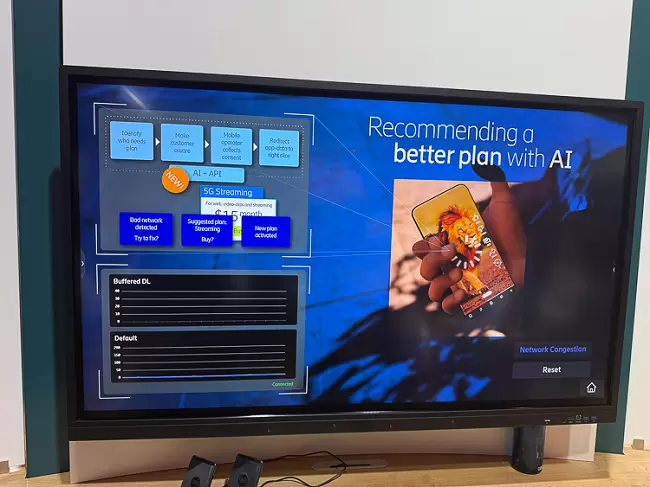 来到“商业创新”展区,这里展示了爱立信在运营商业务上的创新与5G商业价值的释放。比如爱立信通过开放API帮助运营商将网络能力转化为可计价服务。在此基础上,德国电信展示了API行业调用模式,新加坡电信提供差异化体验带来用户付费溢价。