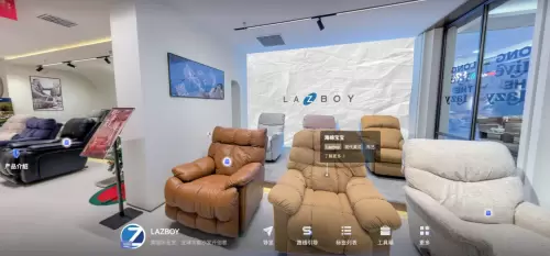 2、管理“开外挂”:在当今数字化时代,管理效能的提升正借助前沿技术实现质的飞跃。在数字化浪潮下,Lazboy通过引入如视数字空间技术,重构了其展厅的资产管理与客户体验链路。依托高精度三维扫描与AI建模技术,展厅内所有家具产品、设施设备均被毫米级复刻至虚拟空间,形成“数字孪生资产库”。管理人员可通过3D可视化界面实时查看整个展厅的布局与来展人员动线规划,而展品的陈列,包括沙发材质、产品序列、工艺名称等数据也能做到即点即看。