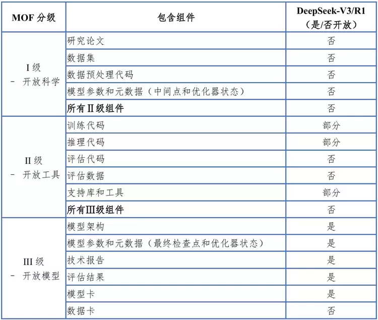 1.依据MOF,DeepSeek-V3/R1尚未达到最开放层级