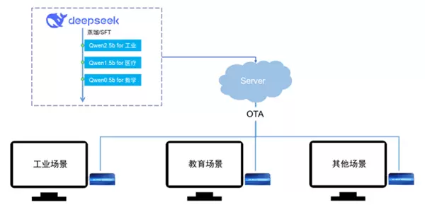 在推动DeepSeek系列蒸馏模型在AMC本地化运行的过程中,跃昉科技还提出一个全新的边缘AI计算应用概念——“OTA(Over-the-Air)+场景化模型”。目前正在进行相关技术验证,以评估其在边缘AI计算中的可行性:
