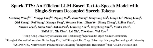 近日,出门问问联合国内外顶尖的学术研究机构香港科技大学、上海交通大学、南洋理工大学、西北工业大学,开源了新一代语音生成模型Spark-TTS,并发布于开源社区SparkAudio。