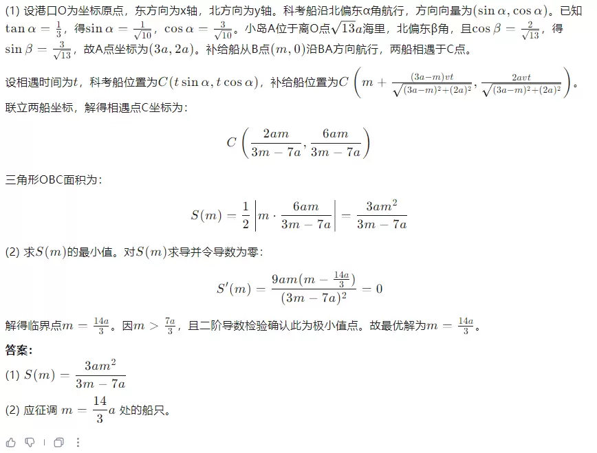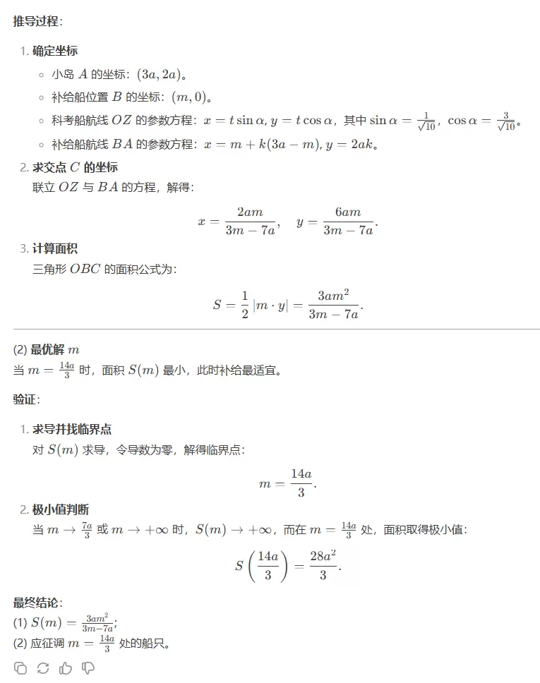 该题牵涉到图形、函数等,手工输入困难,因此我们采用了拍照上传,让两大模型识图解答的方式,令人欣慰的是两大模型都支持识图解题,并且识别结果相当准确,这对于用户来说无疑是一大福音,毕竟对于数学来说,据图解题是常态。