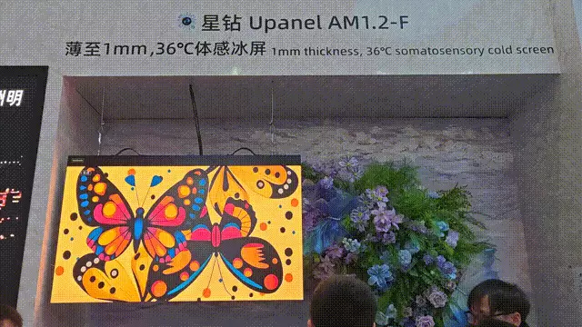 Upanel AM0.6-T透明屏同样是本次展会的一大黑科技。受惠于AM COG(玻璃基)材料的独特优势,屏体具备卓越的平整度,同时低蓝光设计有效减少视觉疲劳,无扫描、无闪烁,高清动态影像无残影、画面流畅细腻。产品透光率超过60%,高透明度既不影响采光,又能呈现惊艳的视觉效果。此外,该产品还支持触摸交互与即时翻译,满足多元场景的创新应用需求。