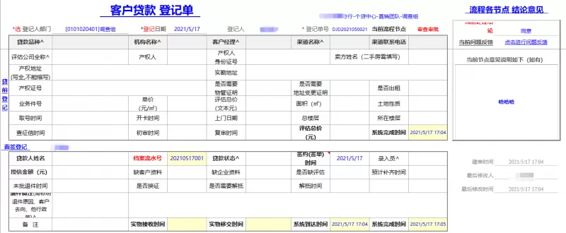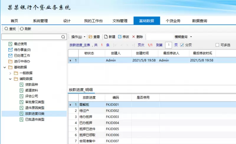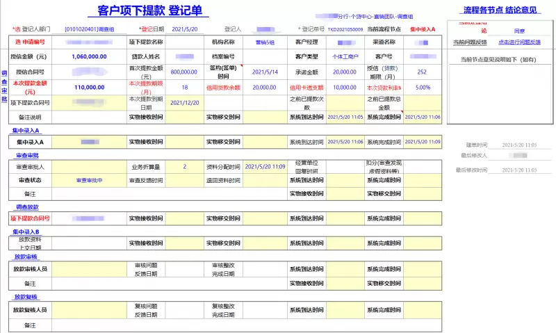 下面我们用勤哲Excel服务器 平台,根据某银行个贷业务管理流程,定制化设计开发的银行个贷业务管理系统。