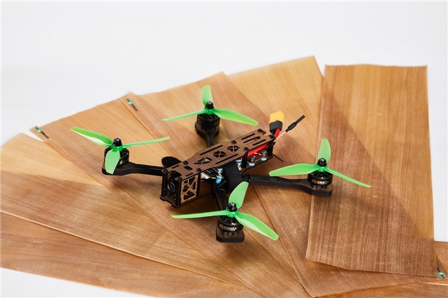 使用HiWood木纤维纸增强材料替代碳纤维材料打造的无人机