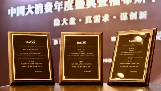 3月7日,福布斯中国携手沙利文、中国大消费CXO创新中心等知名机构在上海举办了2025年中国大消费年度盛典,并发布“2025福布斯中国大消费系列评选”结果。好想你斩获三项重磅奖项!成为全场焦点。