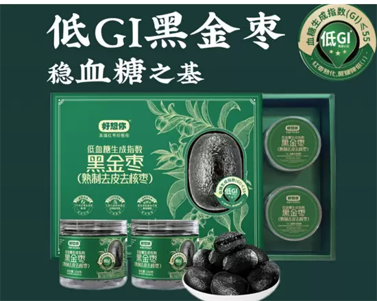 红枣专家好想你,专在创新。从产品创新走向品类创新,低GI黑金枣应运而生。遵循古法九蒸九制精髓,历经72小时精准熟化,采用科学配比降蔗糖工艺,完整保留红枣膳食纤维与天然铁元素。每颗去皮去核的黑枣乌润透亮,肉眼可见的饱满果粒浸润枣香,低GI特性搭配柔韧细腻的酸甜口感,让传统滋补更适配现代健康需求。