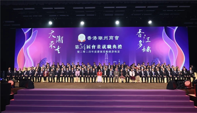 香港特区政府李家超行政长官在祝贺视频中高度评价香港潮州商会。他指出,自 1921 年创立以来,商会始终团结各界潮籍精英,积极促进潮港两地经贸合作与交流,还热心参与社会事务,为香港的发展建言献策。潮州人凭借善拼敢赢、勇于创新的精神,在香港各行各业成绩斐然,不仅推动了香港的经济和社会发展,还大力支持国家改革开放和家乡建设。李家超相信,在新一届会董会的带领下,商会将继续秉持爱国爱港精神,推动香港经济和社会蓬勃发展,在强国建设、民族复兴伟业中发挥更大作用。