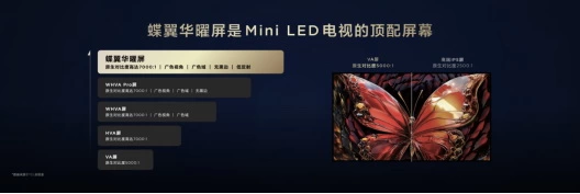 众所周知,屏幕是一款电视的核心部件。Mini LED电视作为依靠亮度和对比度来改善画质的电视品类,必须配备一块高对比度的屏幕,方能充分发挥其画质优势。TCL Q10L系列搭载的蝶翼华曜屏,就是最适合Mini LED电视的VA屏顶配中的顶配。