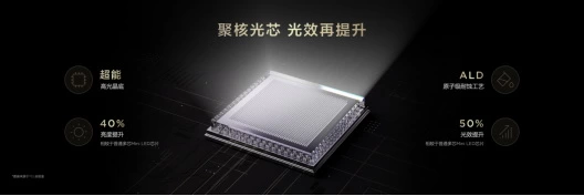 聚核光芯是Mini LED成像的源头,TCL使用超能高光晶底,以高端工艺实现电视亮度与光效的大幅提升,相较行业的多核Mini LED聚光芯片亮度提升40%,光效提升50%。在透镜环节,TCL Q10L 系列采用新一代超聚光微透镜来控制发光角度,相较行业的普通聚光透镜,实现59.4%的背光均匀性提升和41.2%的控光能力提升,实现精准控光。
