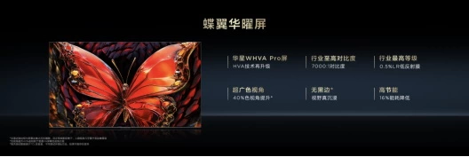 VA软屏具备5000:1的对比度,比对比度仅有1200:1的IPS屏幕更适合Mini LED;作为高端VA屏幕,华星HVA屏更是在7000:1超高原生对比度的基础上,增加了广色视角、广色域,升级为华星WHVA屏;再采用无黑边技术升级为华星WHVA Pro屏;在此基础上额外增加一层在行业里最高端的仅有0.5%反射率的低反膜,即为蝶翼华曜屏。无论白天黑夜,电视画面既不受外部强光干扰,也不受环境中倒影影响,画面纯净不泛白,观影清晰更沉浸。