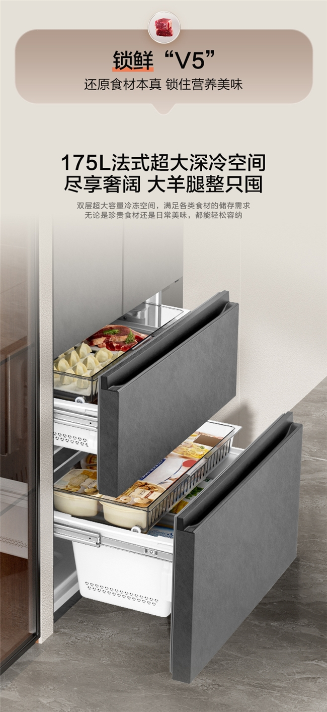 冷冻技术的突破则解决了消费者多年的痛点。-31℃极冻冰鲜功能通过快速跨越冰晶生成带,使冷冻虾解冻后依然像新鲜的一样。这种“冻而不伤”的技术,让忙碌的上班族也能随时享用接近现捕现杀的海鲜品质,周末囤货的冻肉不再只是“将就吃”的选项。
