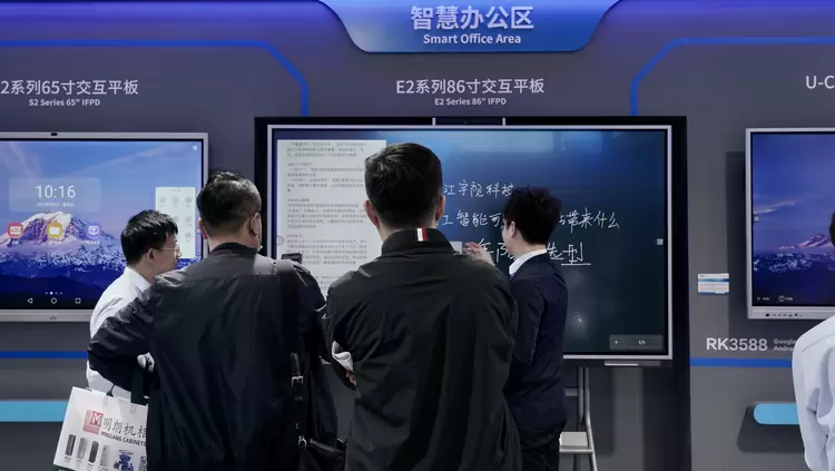 展会现场,搭载DeepSeek大模型的智能交互平板首度亮相,掀起“智慧教育”+“协同办公”革命,它能够实现手写内容智能识别、语义分析与知识图谱生成,提升交互、协作、分析、决策智能化水平。