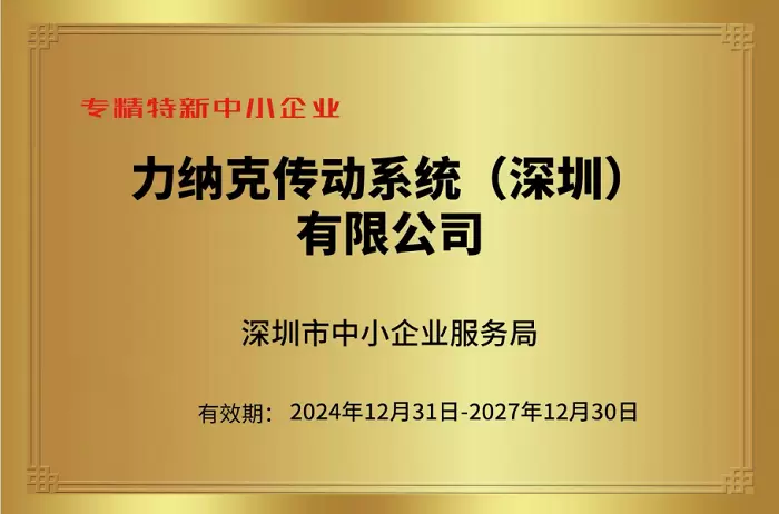 力纳克获评深圳市专精特新企业:以技术创新,推动智能传动行业高质量发展
