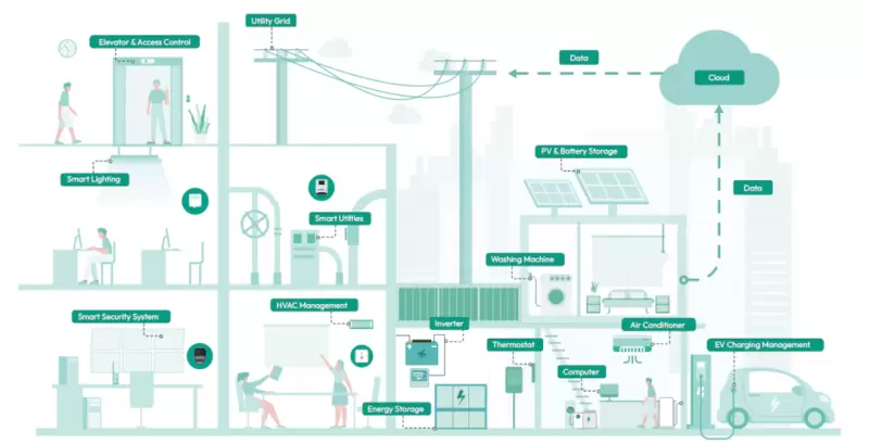 例如,商业体可通过云端系统,将屋顶光伏、地下充电桩、中央空调组成成动态网。当暴雨导致光伏停发,系统0.5秒内调配储能设备供电,同时调整电梯运行策略,保障紧急供电需求不受影响;还可通过分析办公楼宇的人流热力图,将未使用区域的空调提前休眠,让每一度电都用在刀刃上。