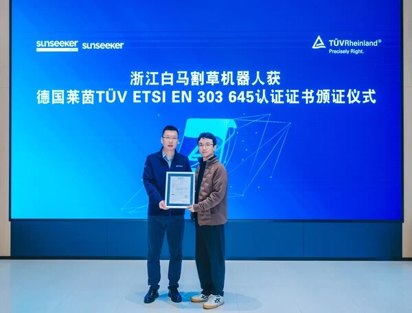 TÜV莱茵为白马割草机器人颁发ETSI EN 303 645认证证书