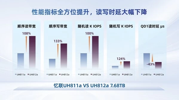 超低延迟:4K随机读取QD1延迟≤55μs,对比上一代(UH811a系列)改善43%。