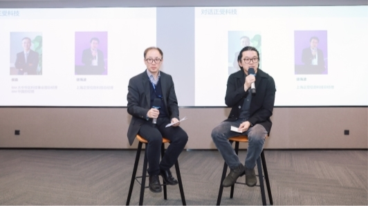 IBM大中华区科技事业部总经理、IBM中国总经理侯淼(左)、上海正受信息科技总经理徐海波(右)