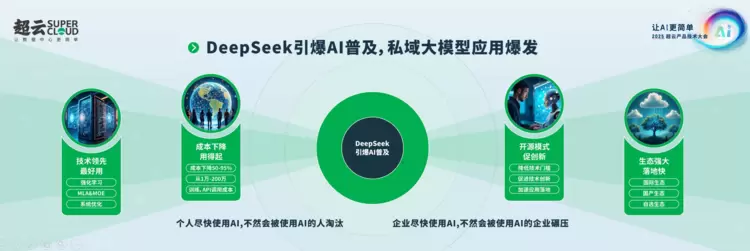 "DeepSeek带来的不仅是成本下降,更是认知革命。"超云产品部副总经理任世杰指出,"就像当年PC取代大型机,现在每个企业都需要自己的'智能大脑'"。