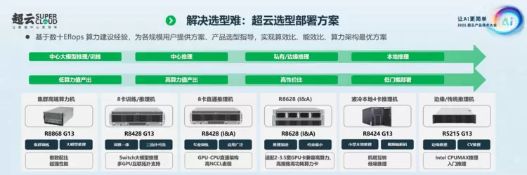 这正是超云推出SuperCube系列大模型一体机的核心动因——将算力集群、存储系统、网络架构、安全模块与预训练模型深度集成,实现开箱即用的"AI即服务"。