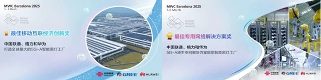 在MWC25巴塞罗那期间,华为联合中国联通,格力电器打造的全球最大5G-A原生专网黑灯工厂,荣获” 最佳专用网络解决方案奖”与“最佳互联经济移动创新奖”两项大奖,标志着5G-A原生专网在智能制造领域正步入大规模部署阶段。